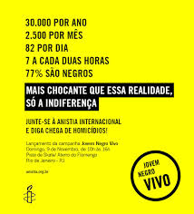 A Anistia Internacional Brasil promoveu no último domingo (9), em evento gratuito no Parque do Flamengo, na zona sul do Rio, o lançamento nacional da campanha Jovem Negro Vivo, que chama a atenção para o alto índice de homicídios contra jovens, especialmente os negros, no Brasil. Durante toda a manhã e parte da tarde, ativistas voluntários da organização não governamental (ONG) arrecadaram assinaturas em apoio ao manifesto lançado pela organização, pedindo às autoridades que sejam tomadas providências para mudar essa realidade.