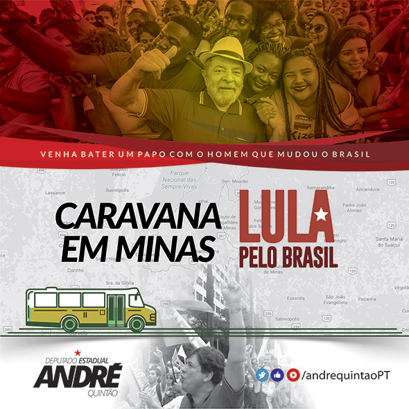 Começa dia 23 de outubro próximo, segunda-feira, a Caravana “Lula por Minas Gerais”, que irá passar por doze cidades em sete dias. O ex-presidente percorrerá o Vale do Aço, do Rio Doce, do Mucuri e o Jequitinhonha, o Norte de Minas e chegará à Belo Horizonte. O mandato acompanhará todo o roteiro!