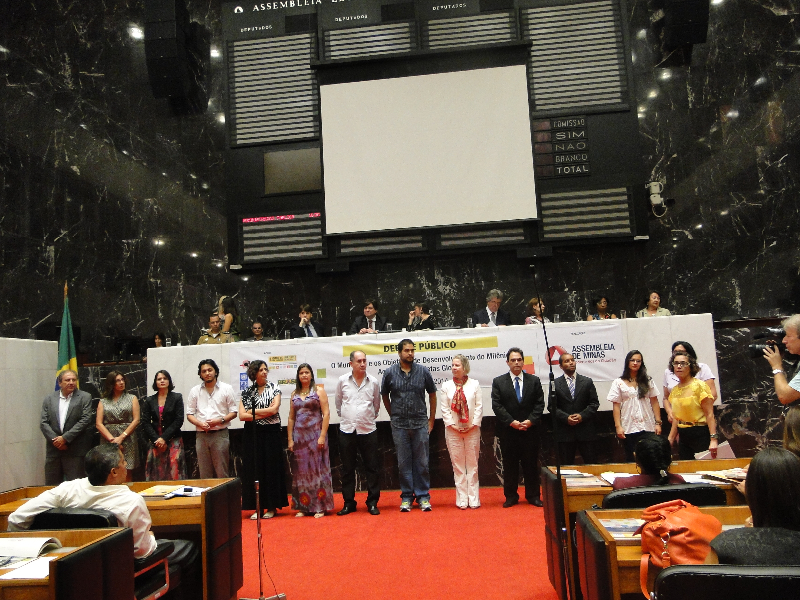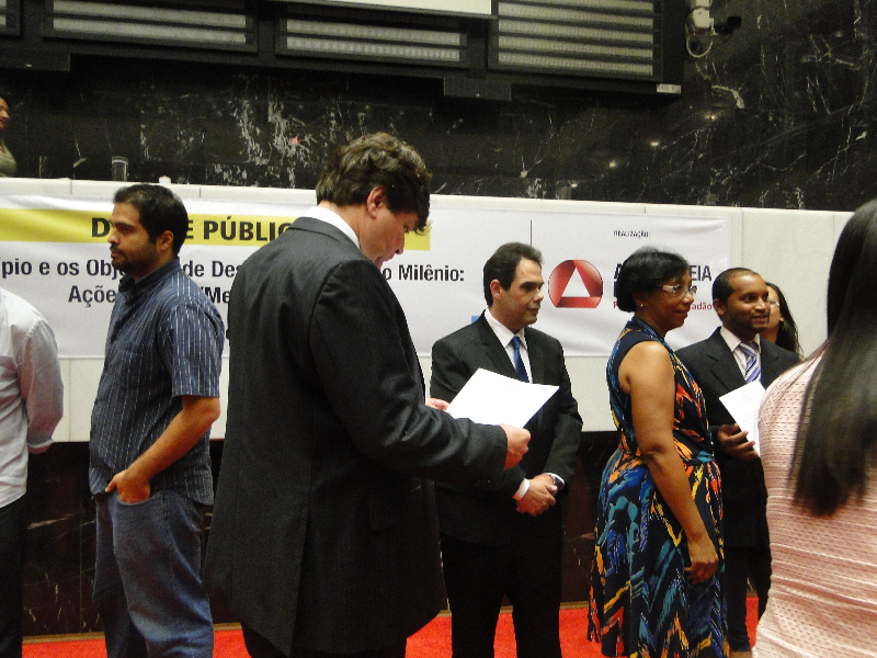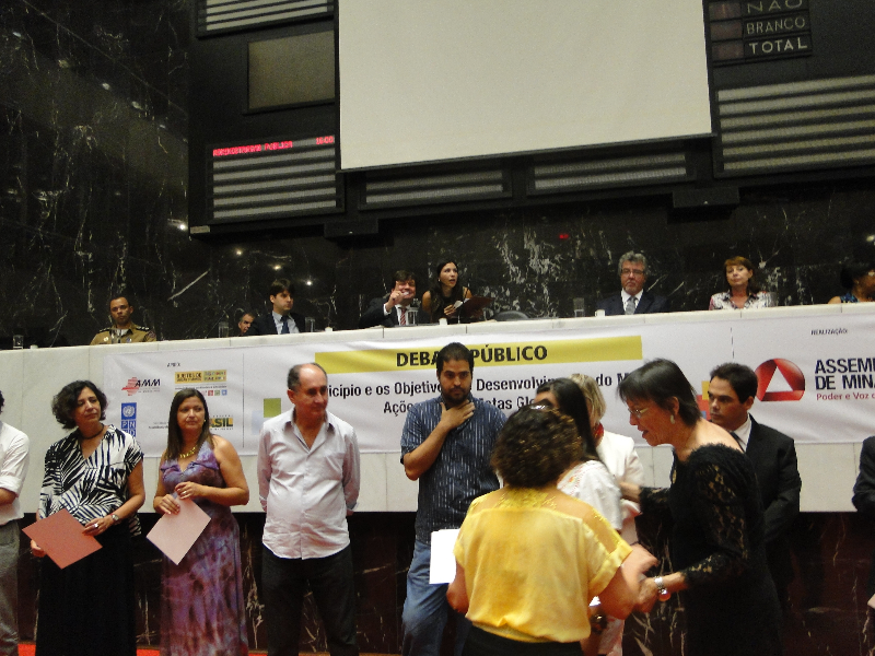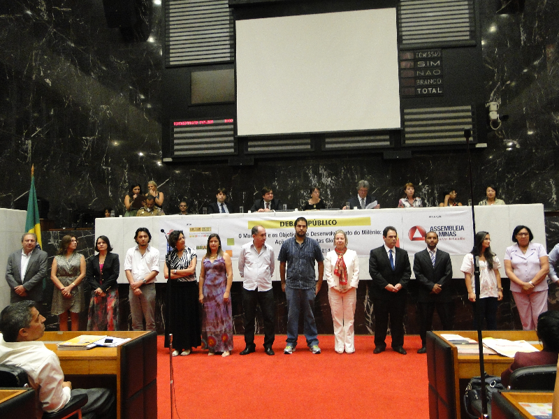Antes do início das discussões, foram homenageados no Plenário os 32 projetos finalistas da primeira edição do Prêmio ODM Minas. Trata-se de uma parceria do Estado com o Prêmio ODM Brasil, executado pela Secretaria Geral da Presidência da República, e o seu objetivo é reconhecer publicamente as ações de relevância e contribuição para o alcance dos Objetivos do Milênio em Minas Gerais.