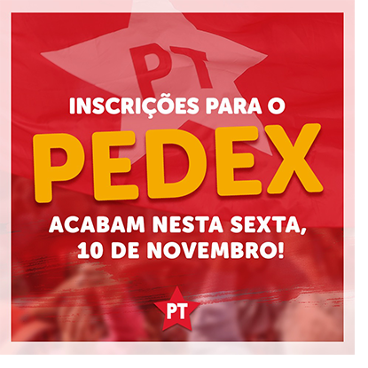 Fortalecer a organização do PT em todo o País, ampliar sua inserção na sociedade e preparar o partido para as eleições de 2018 são os objetivos do Processo Extraordinário de Eleições Diretas (PEDEX) do PT, que será realizado em 3 de dezembro. Devem participar do Pedex todos os municípios que não renovaram suas direções no último PED ou que estão sob a condição de comissão provisória. Nesta sexta-feira, encerra-se o prazo para a inscrição de Chapas e Candidaturas.