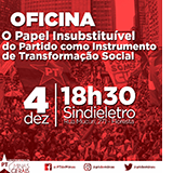 “O Partido como Instrumento Insubstituível do Processo de Transformação Social” é o tema da oficina que a Fundação Perseu Abramo promove, em parceria com o PT de Minas e o Diretório do PT de Belo Horizonte, no dia 4 de dezembro, segunda-feira, das 18h30 às 21h, no Sindieletro (Rua Mucuri, 271, Floresta – Belo Horizonte). A Oficina faz parte das atividades do curso” Difusão do Conhecimento em Gestão Pública e Resistência ao Golpe”.