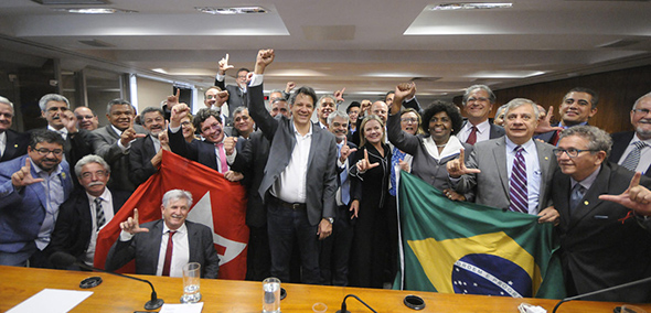 A defesa dos direitos sociais e dos direitos civis, contra qualquer retrocesso deverá orientar a atuação do PT no Congresso Nacional como oposição ao Governo Federal, em busca de frentes amplas, conforme explicou o candidato do PT à presidência da República Fernando Haddad, após reunião com as bancadas do partido na Câmara e no Senado nesta quarta-feira, dia 21. Segundo o ex-ministro essa articulação se dará em “duas trincheiras” : uma mais restrita, em torno dos direitos sociais, como a defesa do SUS e das demais políticas públicas e outra mais ampla, que é a defesa dos direitos civis e teria apoio também dos partidos com agendas mais liberais. Citou a defesa da “escola pública laica”, em contraponto ao projeto de lei da “Escola sem partido.” Leia mais>>