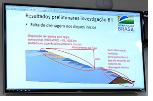 Drenos danificados - Os auditores fiscais do Trabalho questionaram procedimentos da Vale diante de sinais claros de riscos e defenderam parâmetros mais rígidos e punições mais duras. Canaletas trincadas, drenos danificados e até o trânsito de gado que circulava sem controle dentro da barragem foram alguns dos relatos feitos a partir de laudos e fotos datados desde 2015 a que eles tiveram acesso. O deputado André Quintão citou que o lucro líquido da mineradora em 2018 foi de R$ 27,1 bilhões, um aumento de 24,6% sobre o ano anterior, enquanto os investimentos caíram 1.64% e em gestão de barragens ficaram em R$ 150 milhões.