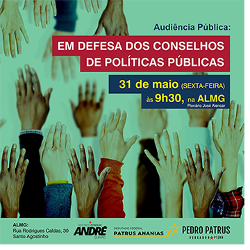 No próximo dia 31, sexta-feira, às 9h30, no auditório José Alencar, da Assembleia Legislativa, será realizada Audiência Pública sobre o decreto 9.759/2019, do presidente Bolsonaro, que prevê a extinção de uma série de conselhos de participação popular. O debate é uma iniciativa conjunta do deputado André Quintão com os mandatos do deputado federal Patrus Ananias e do vereador de BH, Pedro Patrus. “Não podemos admitir mais esse desrespeito à Constituição de 1988, que prevê a participação popular na estrutura das políticas públicas, a combinação imprescindível da democracia representativa com a democracia direta”, afirmou André. |