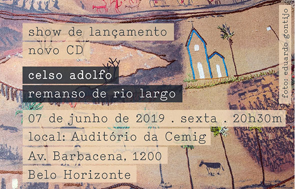 No próximo dia 7 de junho, sexta-feira, o cantor e compositor mineiro Celso Adolfo faz o lançamento em Belo Horizonte do CD “Remanso de Rio Largo”, que reúne 16 canções inspiradas em “Sagarana”, de Guimarães Rosa. O evento, que será um “papo-show”, acontece no auditório da Cemig (Rua Alvarenga Peixoto, 1200, Santo Agostinho/BH), às 19h30, com entrada gratuita, dentro do tradicional programa “Sempre um Papo”. O CD Remanso do Rio Largo foi gravado ao longo de 2018, via Lei Estadual de Incentivo à Cultura de Minas. É resultado de um longo trabalho do músico, que começou com um show realizado no dia 13 de abril de 2012, data da inauguração do Museu Sagarana, na cidade de Itaguara (MG), onde Guimarães Rosa iniciou a sua carreira de médico.