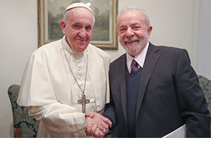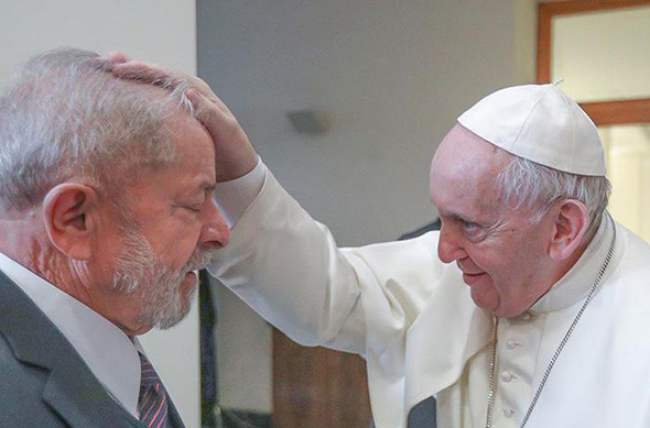 “Regressarei ao Brasil na expectativa de que eu esteja com a mesma disposição do Papa Francisco para brigar por um mundo melhor”, afirmou o ex-presidente Lula, depois do encontro com o líder da Igreja Católica. Lula foi recebido pelo Papa em audiência privada na residência Santa Marta, no Vaticano, durante cerca de uma hora, na quinta-feira. Em entrevista, o ex-presidente relatou os pontos principais da conversa: o combate à desigualdade, que será tema em março de um encontro mundial de jovens economistas convocado pelo Papa, e a questão ambiental. Destacou ter ouvido do Papa, aos 84 anos de idade, com incrível disposição, que deseja fazer coisas que sejam irreversíveis, que fiquem para sempre no seio da sociedade. “Isso deve servir de exemplo para o movimento sindical, para outras igrejas e partidos políticos do mundo inteiro”, disse Lula. Foi o seu primeiro encontro com Papa Francisco, depois de terem trocado correspondência quando Lula cumpria a prisão ilegal em Curitiba.