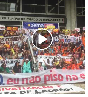 Nesta quarta-feira, dia 12, representantes de categorias em greve se reuniram no saguão da Assembleia Legislativa. Trabalhadores da Saúde, da Educação, dos Correios, da Petrobras e da Dataprev manifestaram, em conjunto, repúdio e disposição de luta contra ações dos governos de Zema e Bolsonaro, que desrespeitam os direitos trabalhistas e sociais e preparam a entrega das estatais, com prejuízos para as políticas públicas e a soberania brasileira.Durante toda a semana, houve audiências públicas que debateram a greve em defesa da Petrobras, da Dataprev e do Serpro e dos trabalhadores da Educação. |