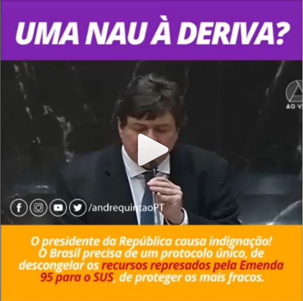 Exatamente no momento em que o Brasil pede uma coordenação de esforços, em que as principais lideranças mundiais se desdobram para enfrentar a pandemia, “a autoridade maior do Brasil deixa uma nau a deriva!”, afirmou o deputado André Quintão no Plenário da Assembleia, ao abordar a gravidade do avanço do Coronavirus, sem que o Governo Federal tome medidas à altura do colapso econômico, social e de saúde pública previstos com a pandemia.
