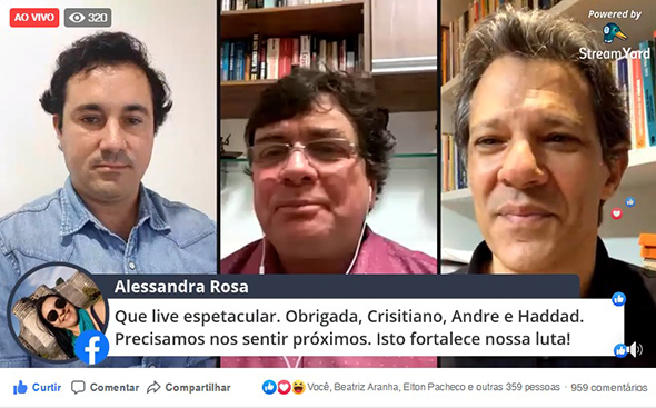 “Esta política econômica neoliberal, na verdade, já completou 4 anos, desde o Temer e agora com Bolsonaro”, afirmou o ex-ministro Fernando Haddad, em debate na TV PTMG pela Internet, sobre políticas públicas sociais, com o deputado André Quintão, líder do Bloco Democracia e Luta na Assembleia, mediado pelo deputado Cristiano Silveira, presidente do PT/MG nesta segunda-feira, 27.