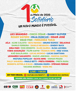 Um “Concerto da Solidariedade Internacional” , em vídeo, é organizado pela CUT e 22 centrais de 16 países, homenageando os trabalhadores e as vítimas da Covid-19, com shows de diversos artistas. Sempre uma data de lutas, o Dia Internacional do Trabalhador neste ano traz motivos mais dramáticos e mais transparentes do que nunca para o grito por direitos, justiça social e proteção à vida com dignidade. As vozes se unem nas redes sociais.
