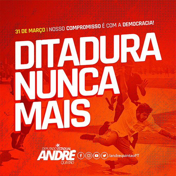 Em pronunciamento no Plenário na quarta-feira, dia 31, o deputado André Quintão fez novos alertas e reflexões sobre a situação do País, com recordes de mortes, enquanto o presidente da República, incita “celebrações” dos 57 anos de um golpe militar que trouxe 21 anos de ditadura, torturas, mortes, supressão de direitos sociais e civis. André registrou seu pesar pela morte do ex-deputado Ivair Nogueira por Covid-19, naquele dia: “uma morte, assim como milhares no Brasil e em Minas, que poderia ter tido sido evitada se a nossa vacinação não fosse tão lenta, se nosso País tivesse assumido o controle da pandemia com responsabilidade”, afirmou.