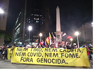 Em Belo Horizonte, centenas de pessoas se reuniram na praça Afonso Arinos e caminharam até a Praça 7, no hipercentro da capital. Em muitos momentos houve gritos por justiça para as 25 pessoas mortas esta semana na chacina do Jacarezinho, no Rio de Janeiro. Houve também distribuição de máscaras PFF2, mais seguras, por parte dos manifestantes.