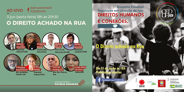 O Encontro Estadual População em Situação de Rua: Direitos Humanos e Conexões, organizado pelo Centro Estadual de Defesa dos Direitos Humanos da População de Rua (CEDDH MG) será aberto nesta sexta-feira, dia 11. O deputado André Quintão participa do Painel de Abertura, com o tema “Direito Achado na Rua” será às 18 horas, on line, com divulgação nas redes sociais. CLIQUE AQUI e acompanhe.